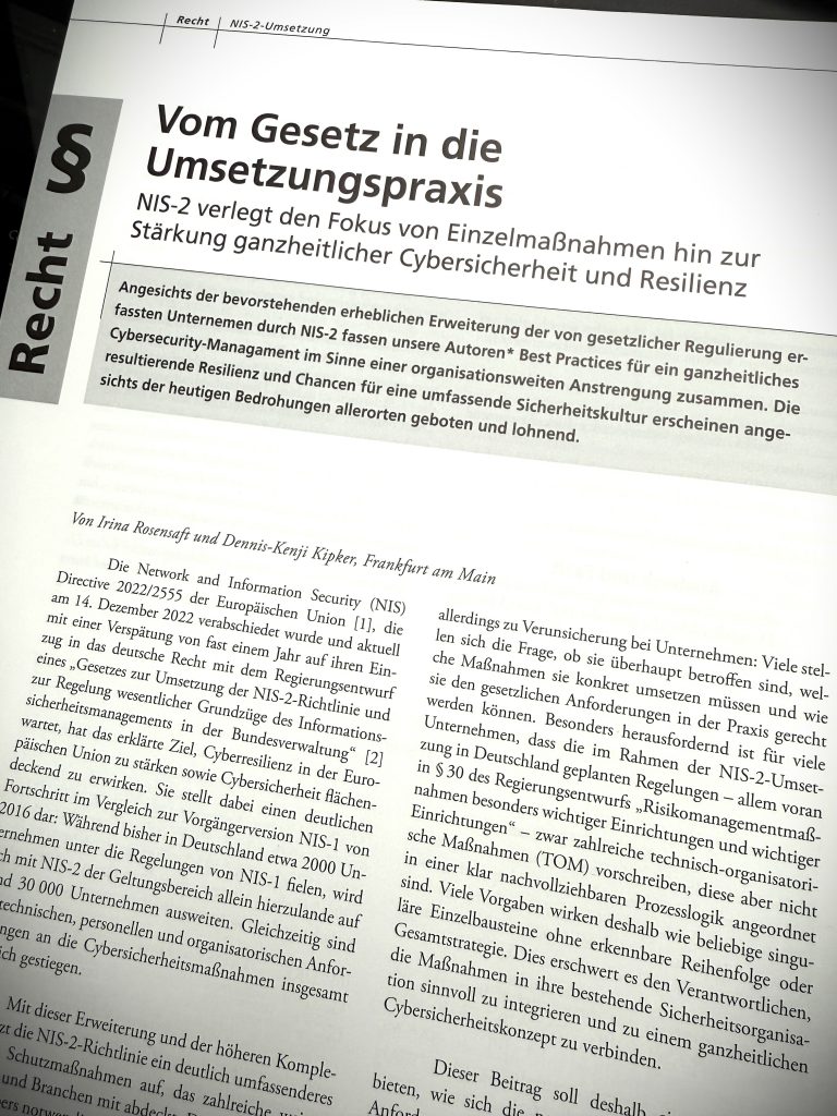 Wer nicht so lange warten mag, für den haben CII Governance Direktorin Irina Rosensaft und ich einen eigenen Starterbeitrag geschrieben, wie man jenseits vom Paragrafendschungel zur vernünftigen Umsetzung von mehr betrieblicher Cybersicherheit kommt – Schritt für Schritt als Titelthema in der aktuellen Ausgabe der Zeitschrift für Informationssicherheit „kes“: