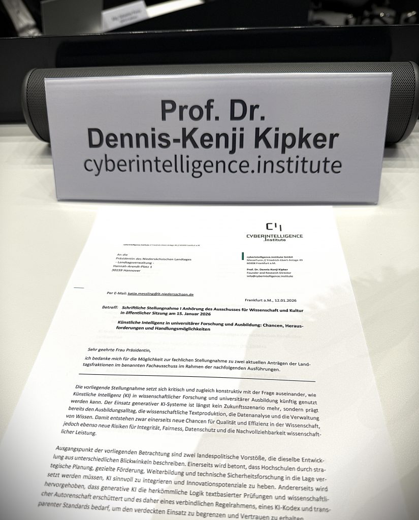 Sechstens braucht es eine Kultur, die Transparenz und Redlichkeit stärkt. KI wird nur dann zu einem nachhaltigen Bestandteil von Forschung und Lehre, wenn sie nicht als Mittel zur Leistungsabkürzung, sondern als Werkzeug zur Vertiefung verstanden wird. Diese Kultur entsteht durch klare Erwartungen, durch Vorbilder in der Wissenschaft, durch offene Diskussion über Grenzen und durch Strukturen, die verantwortliches Handeln erleichtern. Wer jetzt in Regeln, Infrastruktur, Qualifizierung und KI-Sicherheitsforschung investiert, schafft die Grundlage dafür, dass KI nicht das Vertrauen in Wissenschaft und Ausbildung schwächt, sondern ihre Leistungsfähigkeit perspektivisch verantwortungsvoll erweitert. Die vollständige Stellungnahme mit allen inhaltlichen Impulsen gibt es zum Download auf der CII-Website: https://cyberintelligence.institute/news-media/cii-sechs-punkte-plan-zu-ki-in-der-forschung-i-anhoerung-im-land