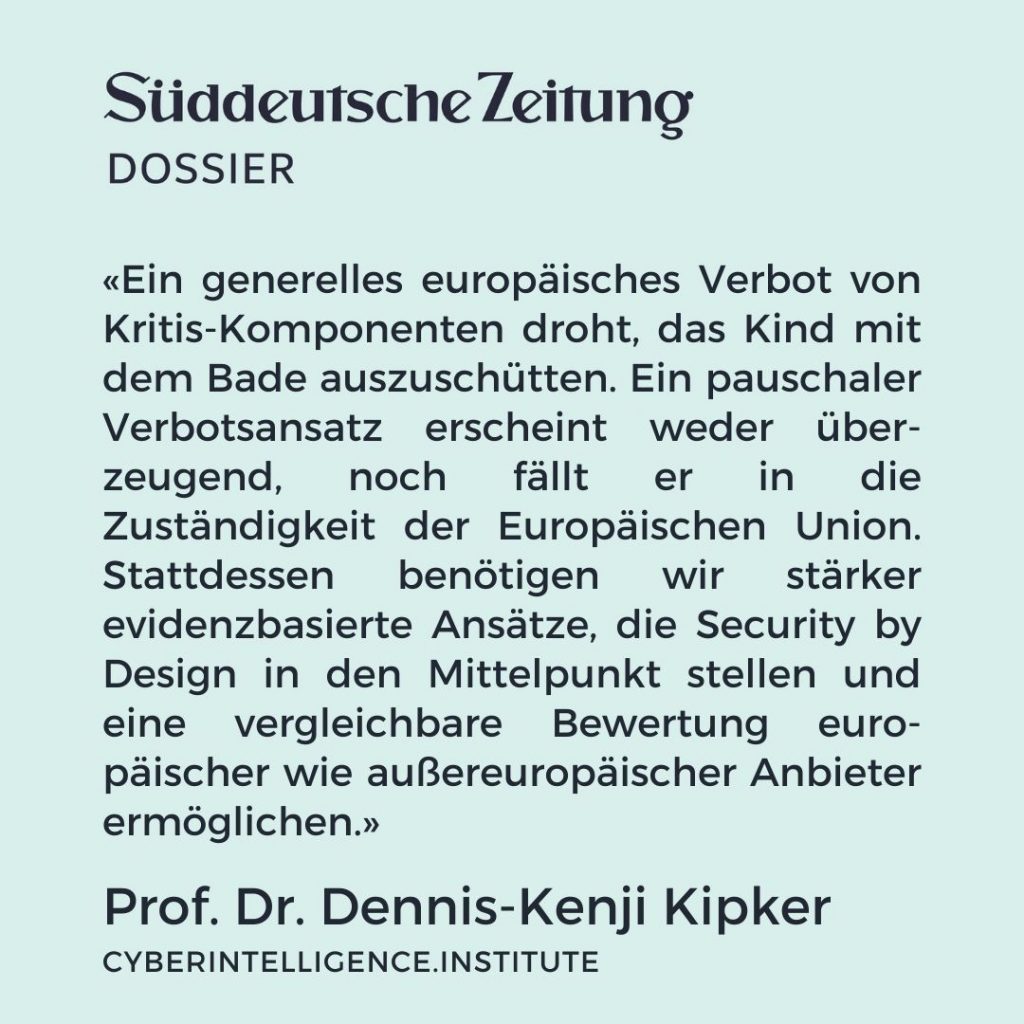 Denn ein pauschales europäisches Verbot von KRITIS-Komponenten droht das Kind mit dem Bade auszuschütten. Ein solcher Verbotsansatz erscheint deshalb weder überzeugend, noch fällt er in die Regelungszuständigkeit der Europäischen Union. Vielmehr sind hierfür die Mitgliedstaaten zuständig und auch Deutschland hat bereits entsprechende nationale gesetzliche Regelungen zum Umgang mit KRITIS-Komponenten eingeführt.