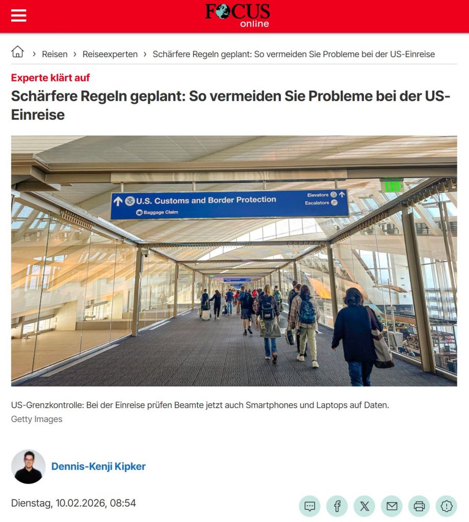 Hinzu tritt die Realität an der Grenze: Denn selbst eine genehmigte ESTA ist keine Einreisegarantie, die finale Entscheidung liegt bei den Grenzbehörden. In diesem Kontext können – je nach Situation – auch elektronische Geräte wie #Smartphone und Notebooks überprüft und im Einzelfall vorübergehend einbehalten werden. Die richtige Vorbereitung schon vor Einreise in die #USA ist deshalb wichtiger denn je, denn wer seine Angaben sauber dokumentiert und kritische Nachfragen beantworten kann, wirkt souveräner, reduziert Reibung und verhindert zugleich, dass unnötig viele sensible Informationen bei der Einreisekontrolle abgefragt werden. Was beim Travel Risk Management bei der Einreise in die USA zu beachten ist, erkläre ich in meinem neuesten Artikel für FOCUS online – inklusive Checkliste der wichtigsten To-Dos vor Abreise und vor Einreise: