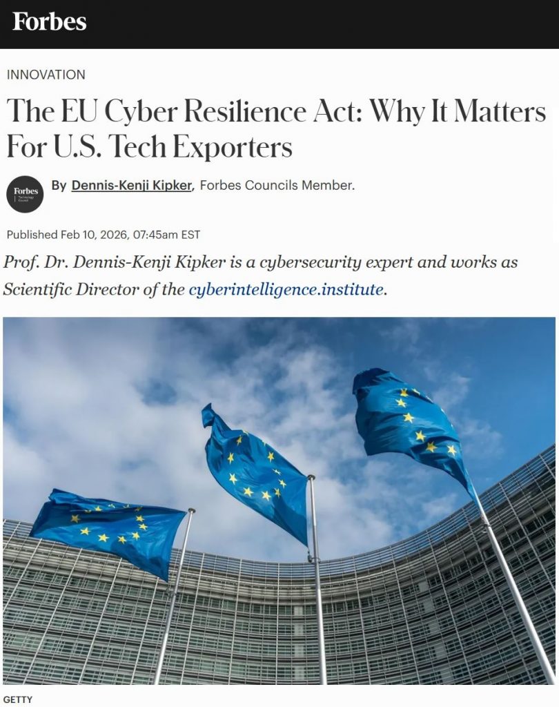 Warum #EU #Cybersecurity auch in den #USA wichtig ist: In einer neuen Reihe schreibe ich in diesem Jahr für Forbes Magazine, warum europäische Regeln für mehr digitale Resilienz auch auf dem US IT-Markt eine zunehmende Rolle spielen – den Anfang macht der EU Cyber Resilience Act (#CRA).